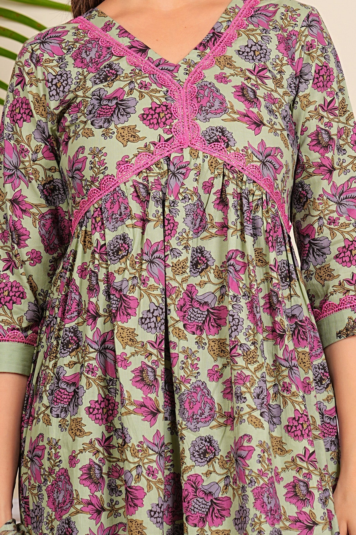 Pure Cotton Printed Designer Women Kurta Pant set With Dupatta Green